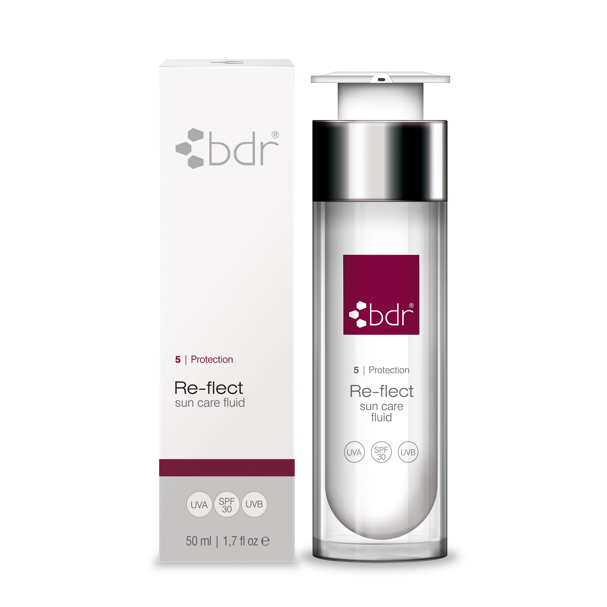 Mit bdr Re-flect schützen Sie Ihre Haut vor UVA und UVB Strahlen und stoppen somit die Zeichen vorzeitiger Hautalterung. Der mineralische Lichtschutzfilter (Karanjaöl Titandioxid) liefert einen sofortigen Lichtschutz bei zusätzlicher antibakterieller und entzündungshemmender Eigenschaft, der chemische Lichtschutzfilter (Breitbandfilter UVA und UVB) sorgt für den Breitbandschutz gegen Sonneneinstrahlung (Aufbauzeit ca. 20-40min.). Wertvolle Inhaltstoffe verwöhnen, das enthaltene biomimetische Lipopeptid wirkt entzündungshemmend, abschwellend, antibakteriell und beruhigend. Bdr Re-flect überzeugt durch seine leichte, geschmeidige, nicht fettende Textur.