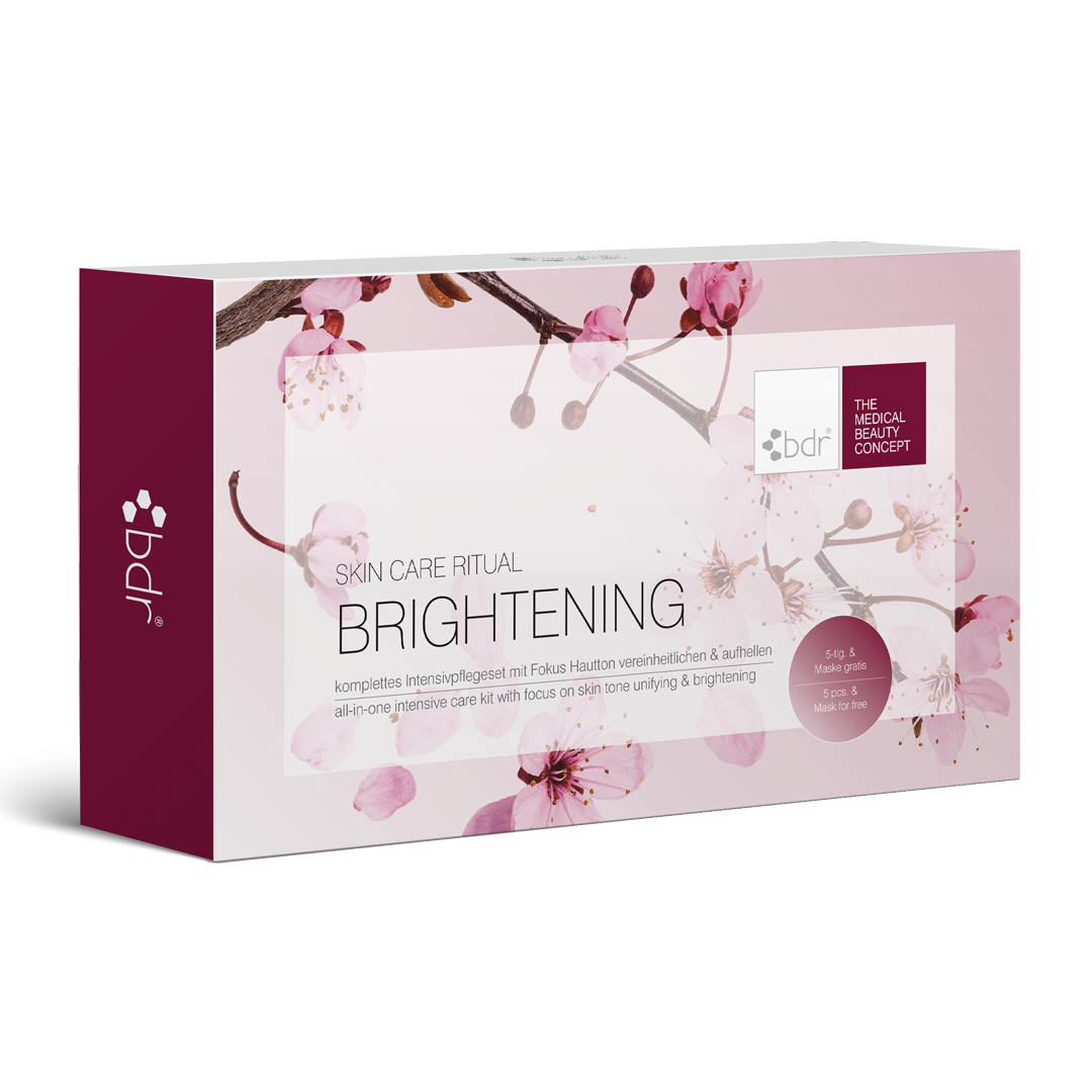 Das hautaufhellende Brightening Serum mit stabilisiertem Vitamin C, Whitening-Peptid, Azelainsäure und Tranexamsäure bekämpft auf verschiedenen Ebenen sowohl Hyperpigmentierung als auch Rötungen. Die wirksame Formel korrigiert den Hautton, lässt Altersflecken verschwinden, stärkt die Hautstruktur und bringt fahle, fleckige Haut wieder zum Strahlen. Der Effekt des zart nach Kirschblüte und weißem Tee duftenden Serums wird noch potenziert durch die Kombination mit der Brightening Essenz Re-action EP sowie der Abschlusspflege Re-vital EP. Täglich abends auf Gesicht, Hals und Dekolleté auftragen.